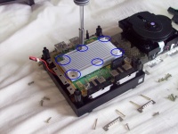 - Los tornillos que están justo en el lector de Memory Card de la consola tiene una pequeña chapa que conecta la masa a los controles, son tornillos largos y mas finos