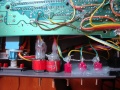 Para parámetros que usan más de un switch, usé un botón rotatorio. Circuitos de simples diodos convirtiendo el botón de salida a binario. Para tener suficiente espacio para todos esos botones en el panel frontal tuve que cortar un poco el plástico.